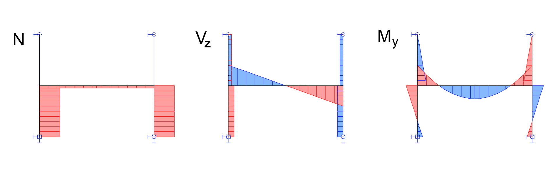 The internal forces in the discussed frame, calculated by the global FEM model, are as follows.
