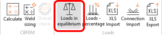 These two approaches differ in the boundary conditions and in the way the computational model is loaded. Two variants of the model are switched using the Loads in Equilibrium button in the Load section of the top ribbon.