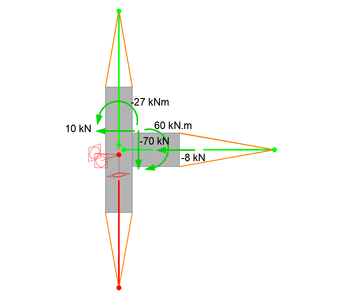 As already mentioned, the model in Connection is loaded by internal forces in the individual members immediately at the connection node (note: in the solid view, the loading forces and moments are displayed at the ends of the visualized connected elements, which can be misleading when using the application for the first time).