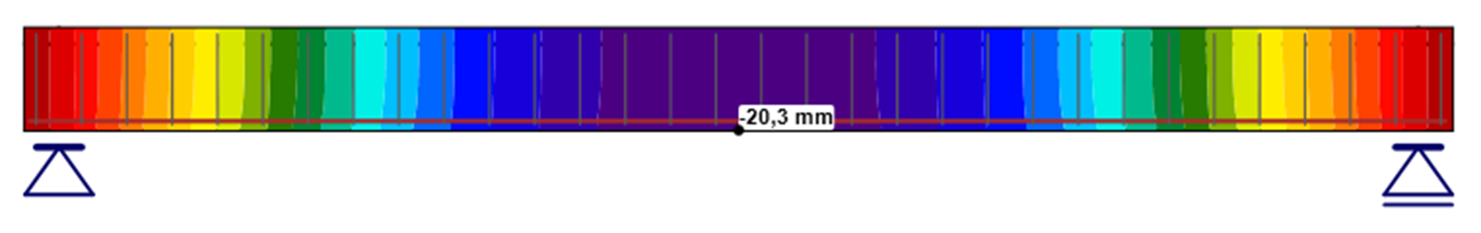 Deflection check uses the same approach as we explained in paragraph for crack width. Two models are used to cover short-term and long-term deflections. The only limit in current version is the impossibility to show the deflected shape once we deal with a trimmed end in the model (typically 1D member details).