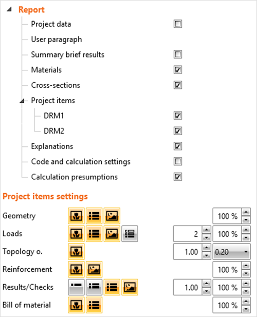 A new controller for report settings has been adopted from other IDEA StatiCa applications, with whole drag&drop functions, custom report chapters (available in project data or discontinuity region tabs under pen icon) and other personalization of the final product. These settings can be saved once they are made and re-used in any other project by the buttons on the ribbon.