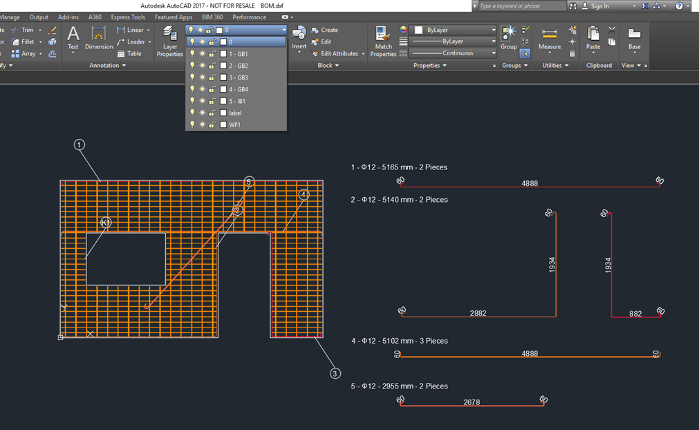 Once we export and open the file, we can see the shape of detail and reinforcement items sorted into basic layers.