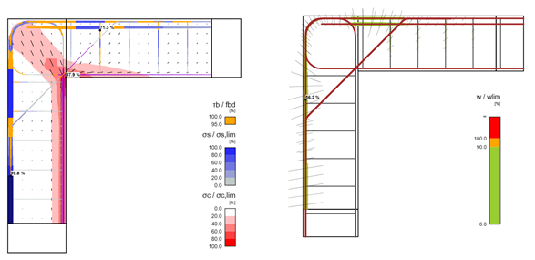 The new legend for summary overview brings more user-friendly utilization of stress in the concrete, tensions and bond stresses in the rebars.