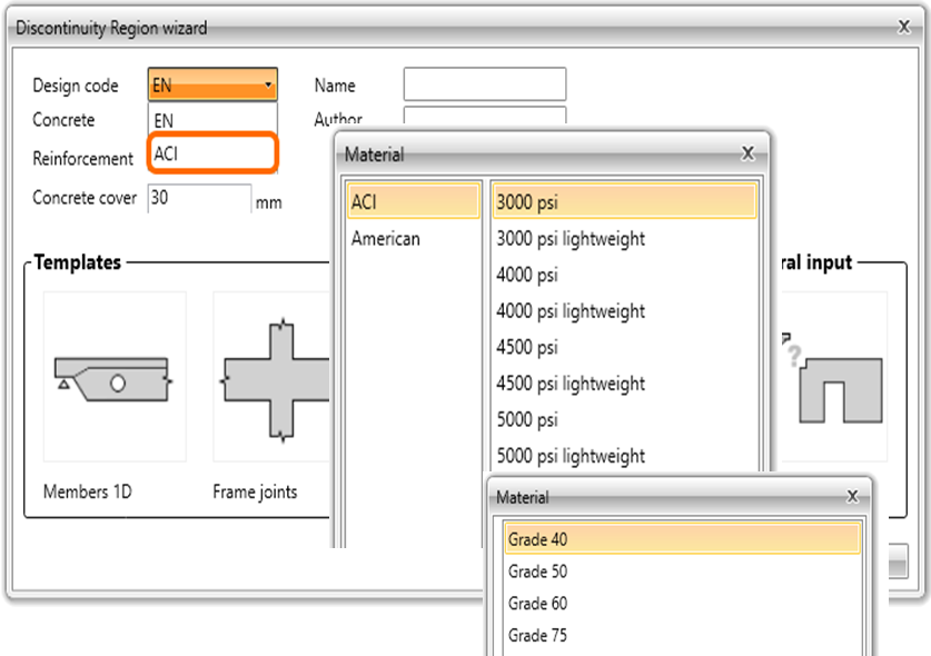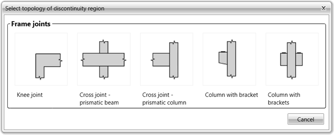 Frame joints are one of the most used type of detail (discontinuity region) in concrete structures. It comes with several templates to ease the input of geometry and loads.