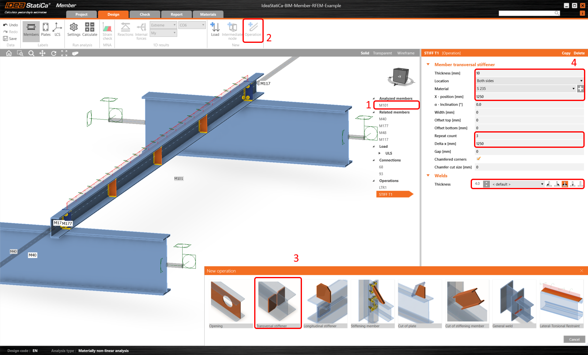 Then add the operation Transversal stiffener.
