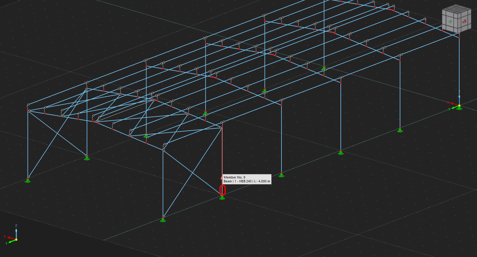 In RFEM/RSTAB, select one of the inside members, as shown in the following picture.