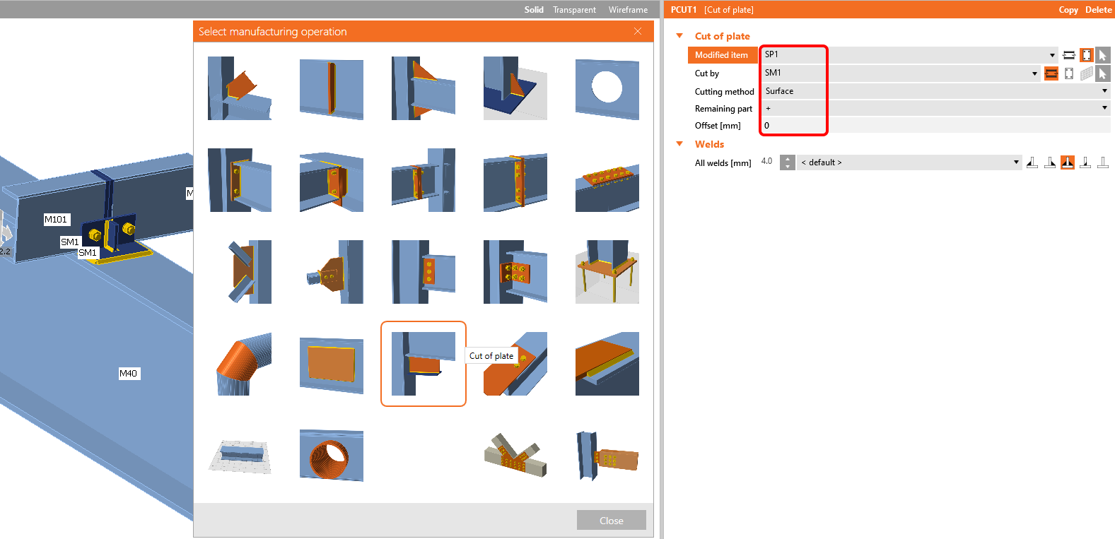 The last operation is the Cut of plate.