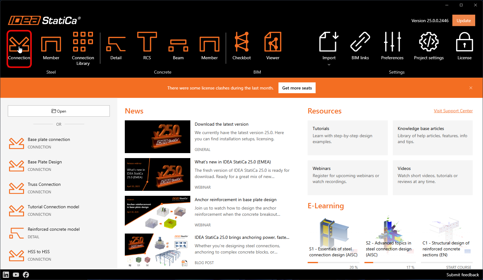 Run the IDEA StatiCa Connection. Everything starts on the Steel card.