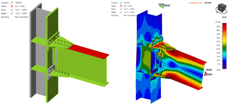 Figure 5.12: IDEA StatiCa model for Baseline model (with friction bolts) under the moment of 4,900 kips-in.