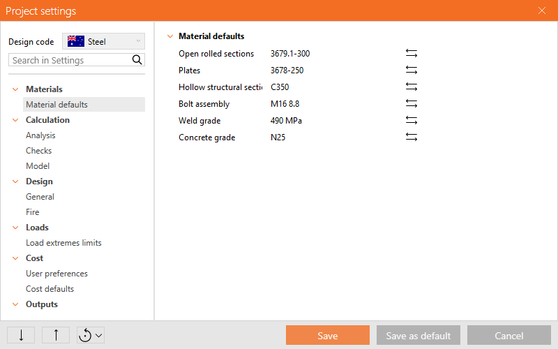 All the preset values can be saved as defaults and also shares (i.e., within a company) to be used in future projects. Read more about how the Project settings work.