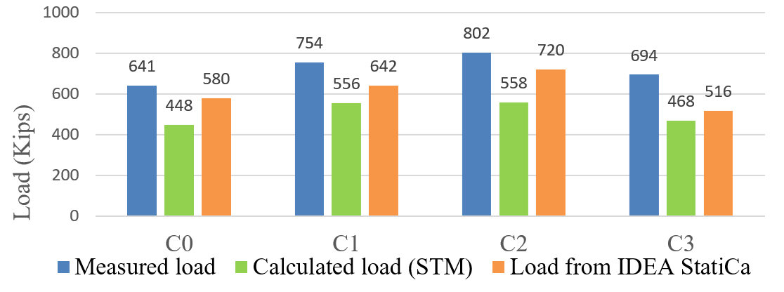 Figure 1.30: Comparison of measured, calculated (STM) and maximum load from IDEA StatiCa for C specimens.