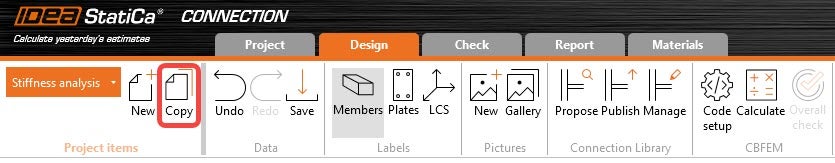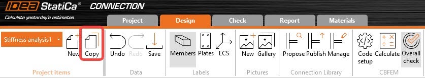 In the copied connection, change the analysis type to Stiffness (ST) in the project item data.