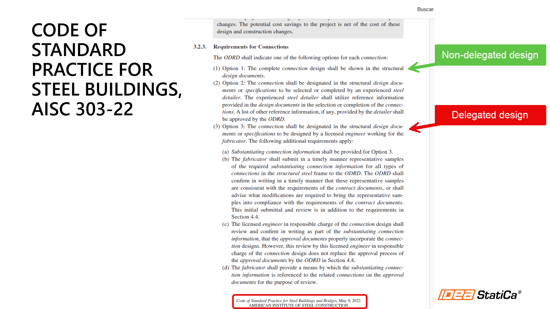 For connection design, the AISC Code of Standard Practice has three options for the Engineer of record to select: