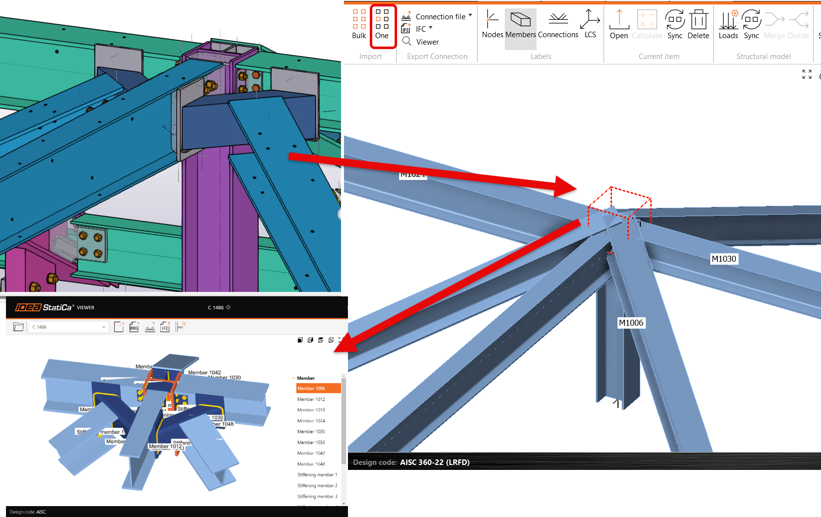 - The communication of design loads between the EoR and connection designer: This challenge is repeatedly highlighted in those AISC presentations and from IDEA StatiCa user’s feedback. A quick example is when a node has more than two members and the connection designer gets only the envelope forces. That means the worst-case force for every member is used, then the connection designer ends with an overload joint, which is unrealistic.