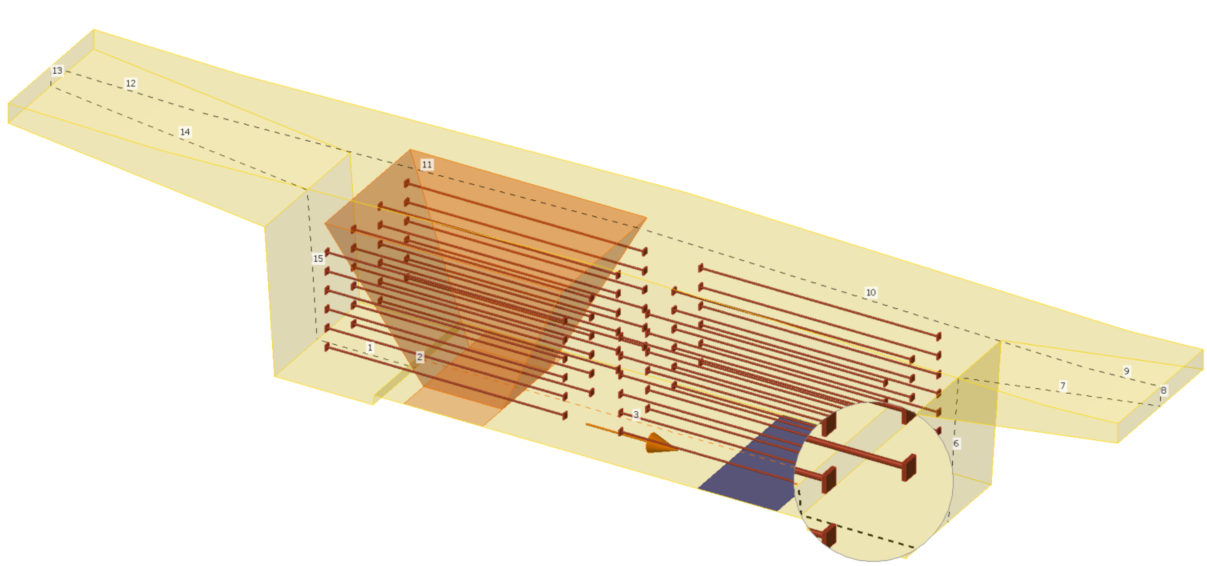 With IDEA StatiCa, you can design and assess reinforced concrete structures while taking into account the influence of the increasing compressive resistance of concrete in partially loaded areas. Horizontal reinforcement bars are automatically added to resist the transverse tensile forces and pass the Eurocode provisions.
