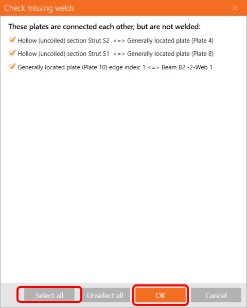 Al momento abbiamo notato che nel modello mancano alcune saldature, ma non c'è da preoccuparsi, perché è possibile correggerle utilizzando la funzione 'Controlla saldature mancanti'.