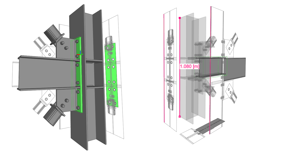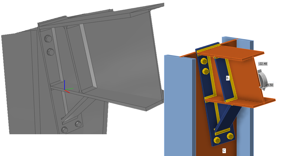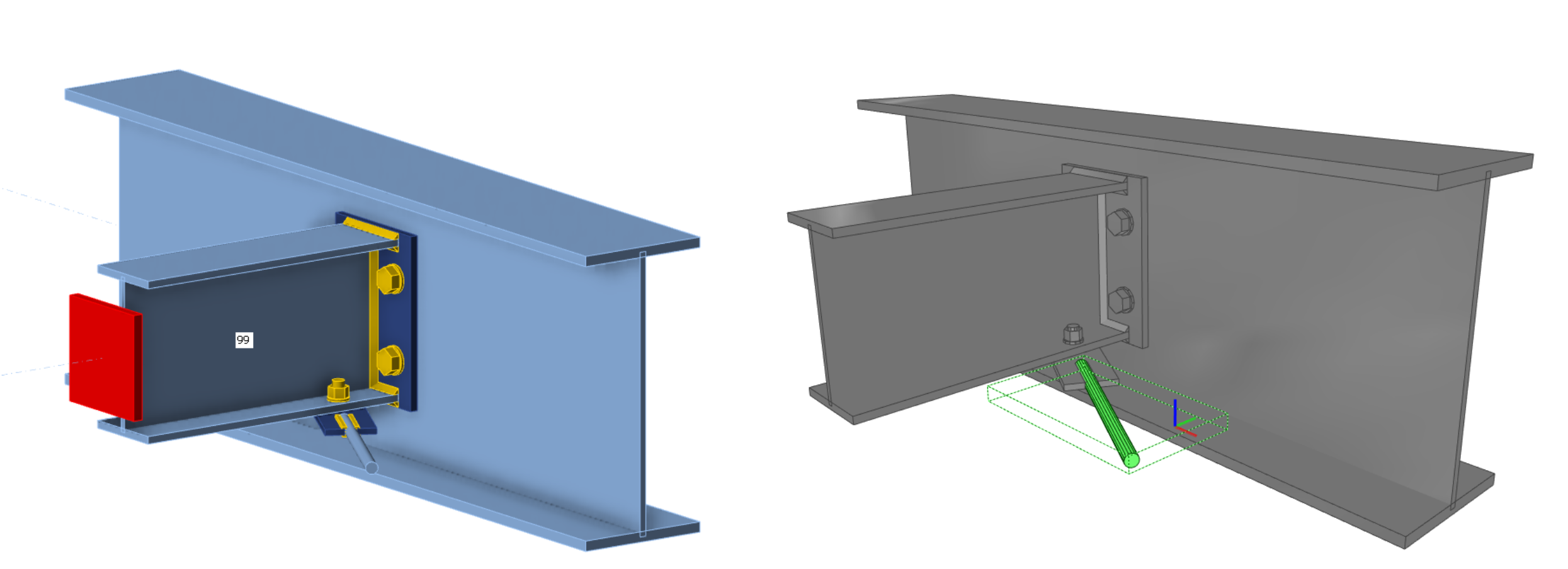 Il file IFC può essere importato in strumenti BIM/CAD (come Tekla Structures, Autodesk Revit, ecc.) come rappresentazione visiva del modello di connessione. Ciò consente al progettista di comprendere meglio il modello. Aprendo il modello in qualsiasi software di visualizzazione IFC si ottiene una visione completa e la possibilità di creare viste di sezione, tagli e misure aggiuntive.