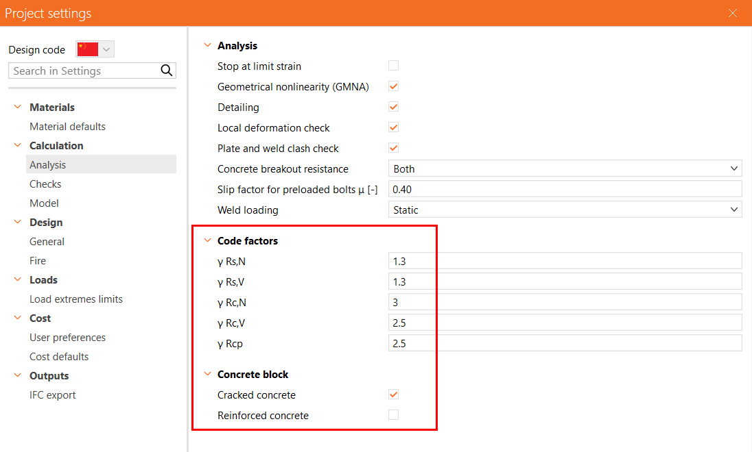 Per saperne di più sulle verifiche specifiche del codice, consultate l'articolo Verifica del codice degli ancoraggi secondo la norma cinese.