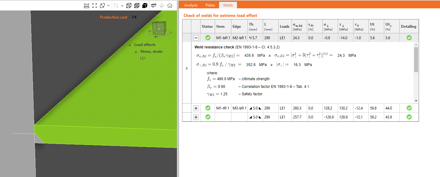 È stato introdotto un aggiornamento per la verifica delle saldature secondo lo standard canadese: Nella verifica della saldatura non viene considerato l'aumento di resistenza direzionale per una saldatura a filetto su un solo lato.