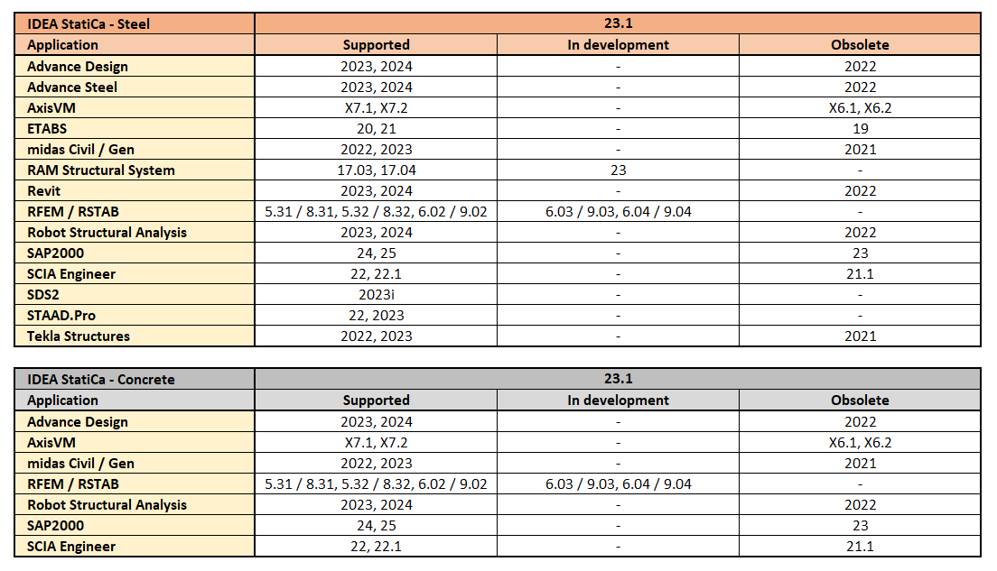 We have taken several actions to ensure the consistent update process of our BIM links. In each major release of IDEA StatiCa (this year, it will be 23.0 and 23.1), we support the two most recent major releases of each linked application. The older versions become obsolete, this happens in major IDEA releases only (patches will never disconnect older versions). On the other hand, when a new major release of the BIM application comes, we develop/update the link in two months – the link appears in a patch of IDEA StatiCa.