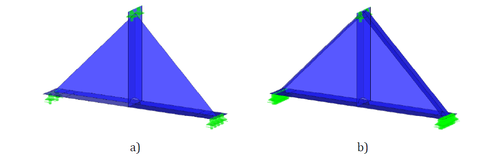 \[ \textsf{\textit{\footnotesize{Fig. 6.1.2 Research FEM model a) haunch without a flange b) haunch with a flange}}\]