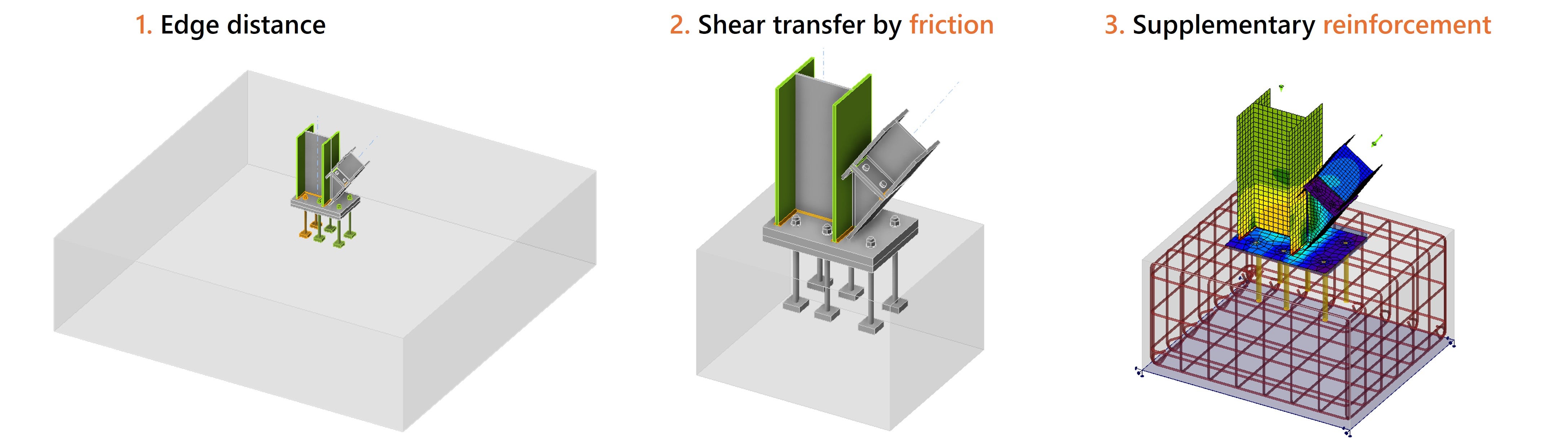 - Afschuifkrachten overdragen via wrijving in plaats van via de ankers. De hoge drukkracht in de kolom zorgt voor voldoende wrijvingsweerstand.