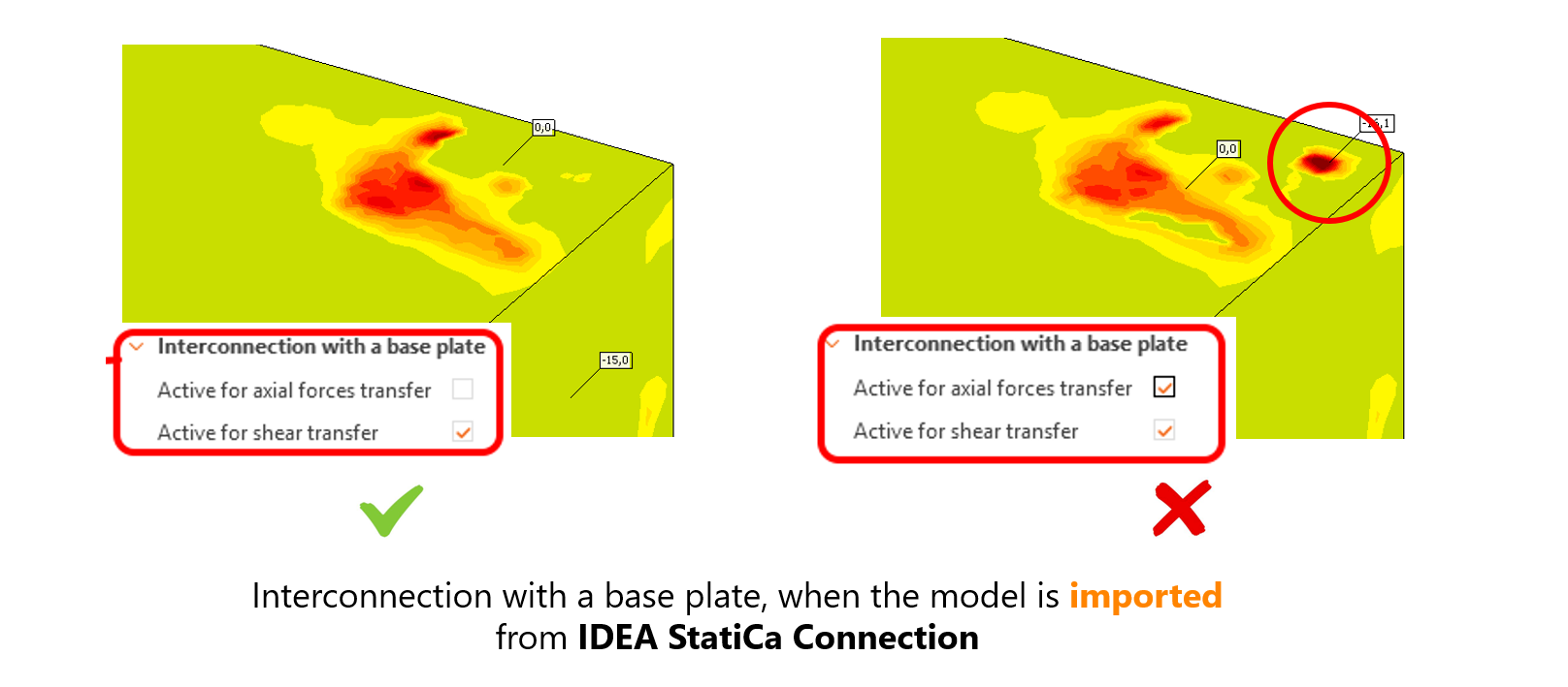 - Wanneer je het model niet exporteert uit Connection wordt de belasting op de voetplaat gezet en kun je de axiale en afschuif overdracht tussen de plaat en ankers activeren.