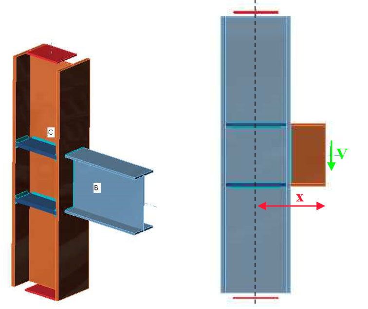 \[ \textsf{\textit{\footnotesize{Fig. 4.4.6 Benchmark example of the welded beam to column joint with force eccentricity}}}\]