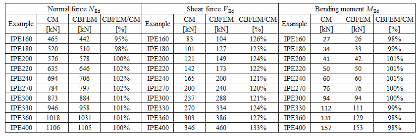 Tab. 4.4.2 Comparison of CBFEM and CM