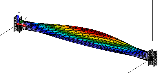 The buckling mode shape also provides us with the information whether the member fails in flexural buckling around weaker or stronger axis, torsional buckling (axially loaded columns) or lateral-torsional buckling (bended beams) or local buckling (members with slender plates). Note that for complicated structures, buckling mode shapes may combine buckling of several members with various shapes. Also, if a whole frame is modeled, the frame will buckle as a whole and not columns and the girder separately.