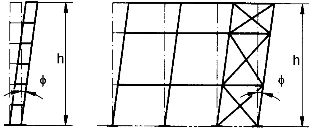 Global imperfections of the structure are described in EN 1993-1-1, Cl. 5.3.2 (3). The structure should be inclined in the form of equivalent sway imperfection according to the following figure.