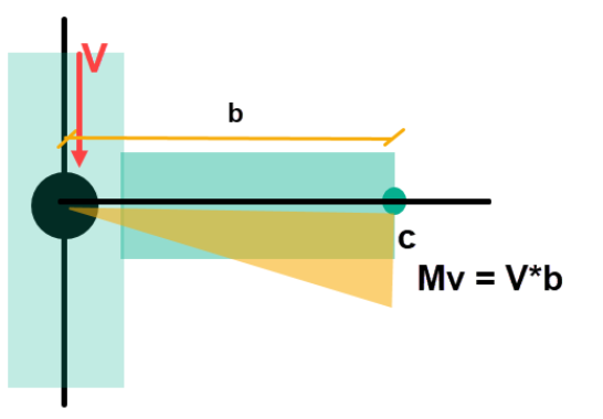 Het zichtbaar maken van het moment wat optreedt door de aanwezige dwarskracht kan op de volgende manier :
