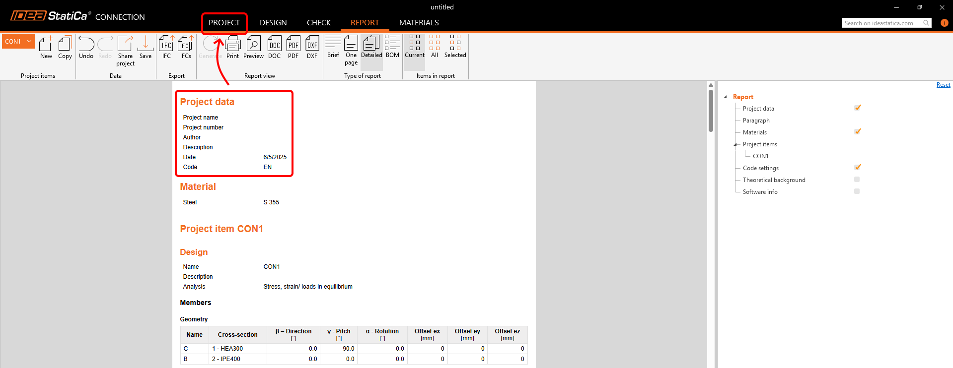 Het rapport wordt gegenereerd en u kunt het opslaan in PDF of DOC (Microsoft Word) formaat of het meteen afdrukken. Je kunt ook een 3D IFC-model exporteren, 2D tekeningen van platen door op de DXF-knop te drukken, en het verbindingsmodel delen in de online Viewer (daar kun je ook een 3D DWG-bestand exporteren).