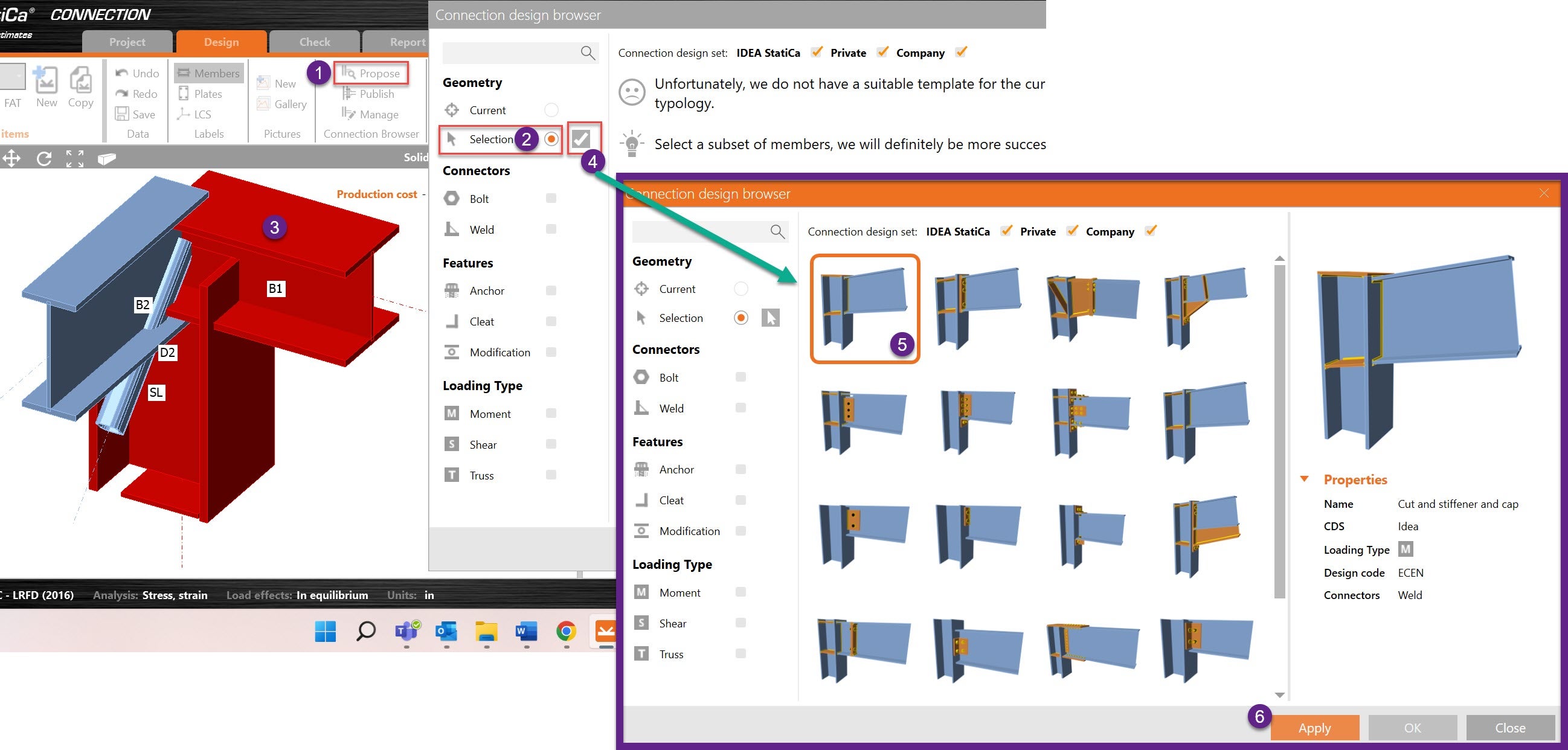 Connection browser helps to re-use previous designs that the user published previously in their private or company data set. However, sometimes the user only has templates for just two members that are part of the full model, so, the selection option can be used to just bring templates for those 2 members and then build the rest of the connection, either from scratch or again using the selection option:
