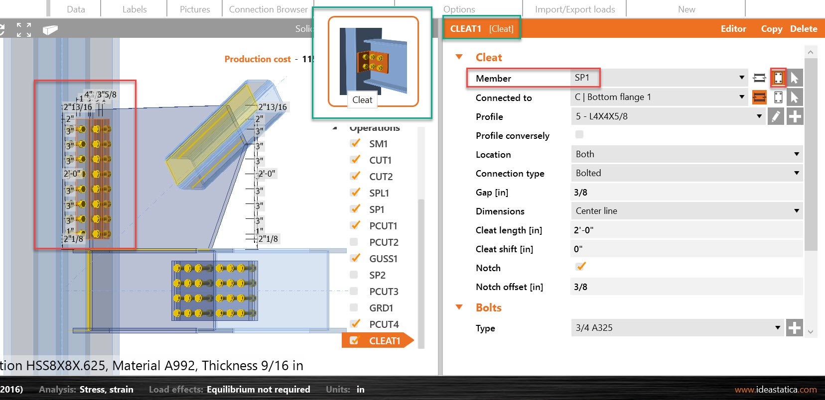 Cleat operation can be assigned to an existing plate that will be connected to a member, as the next example: