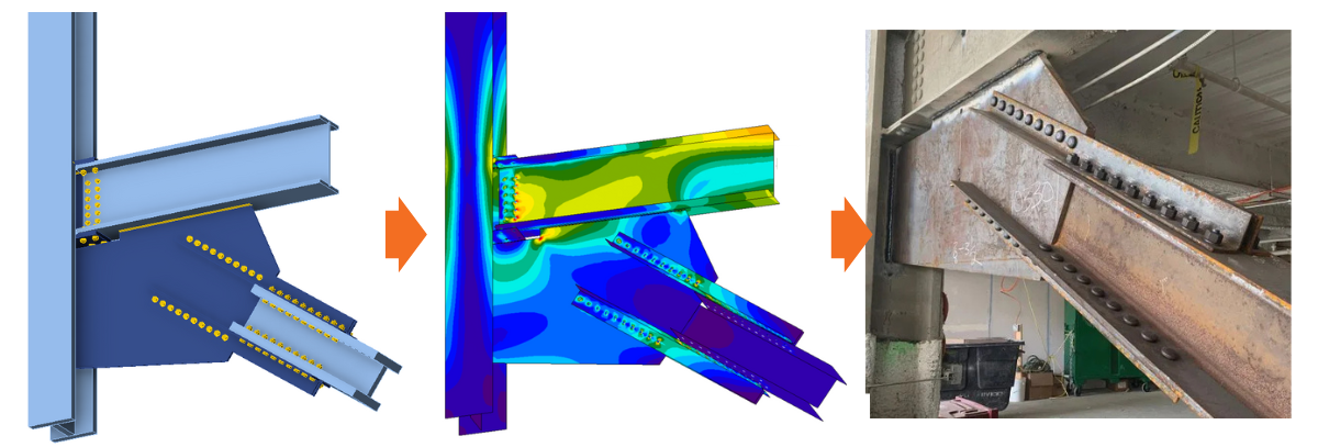 Due to the new and existing details and new load conditions, structural engineers found it impractical to use the Uniform Force Method in gusset plate connections (AISC traditional calculations).