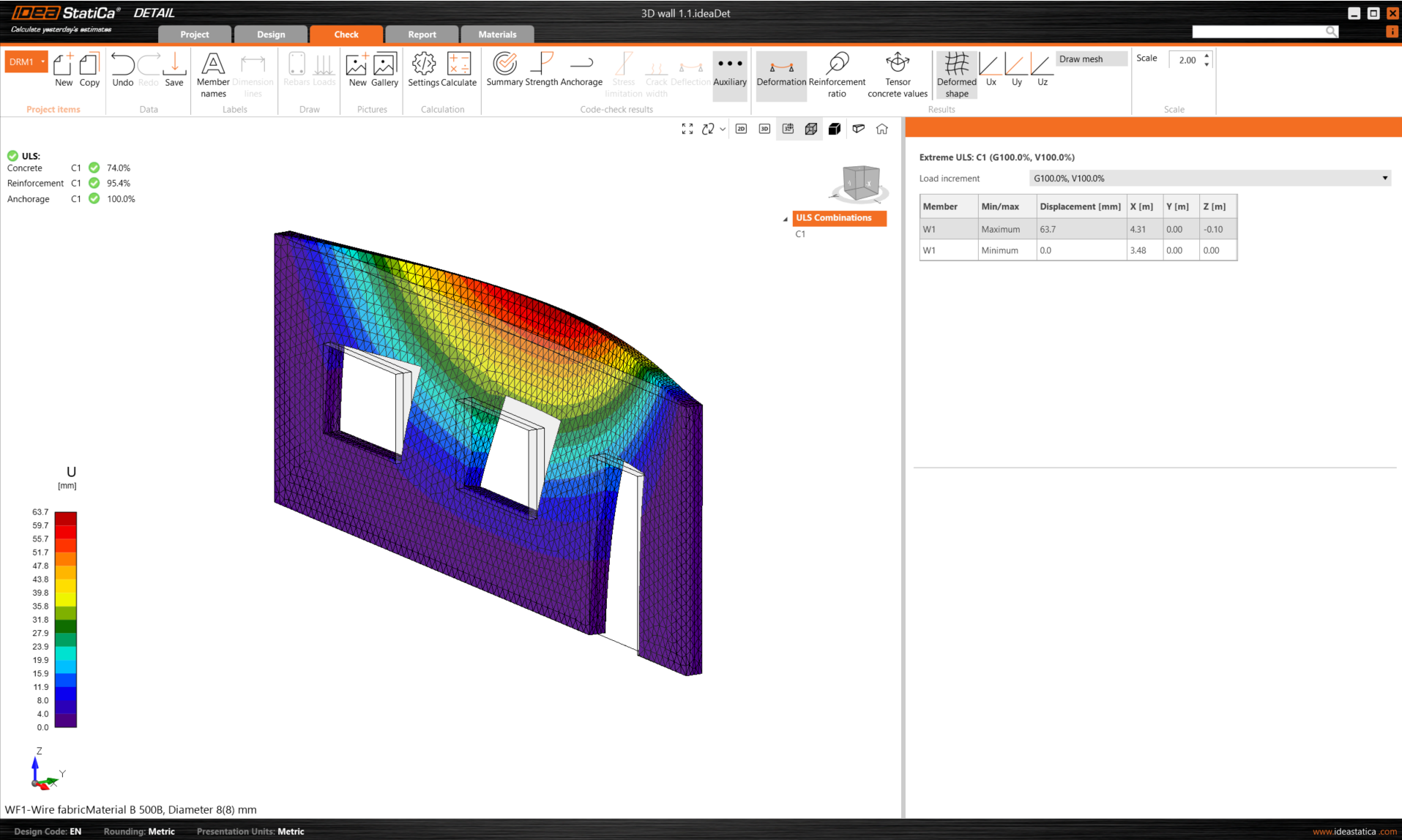 In the Results section, you will see three basic evaluations that are in line with the ULS criteria (ultimate limit state).