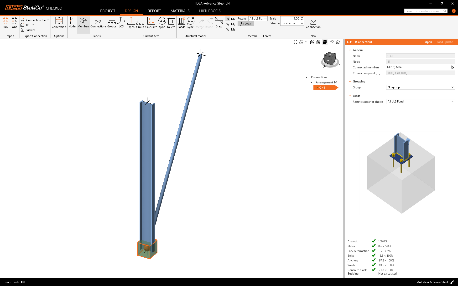 You have successfully linked Advance Steel with IDEA StatiCa Connection via Checkbot.