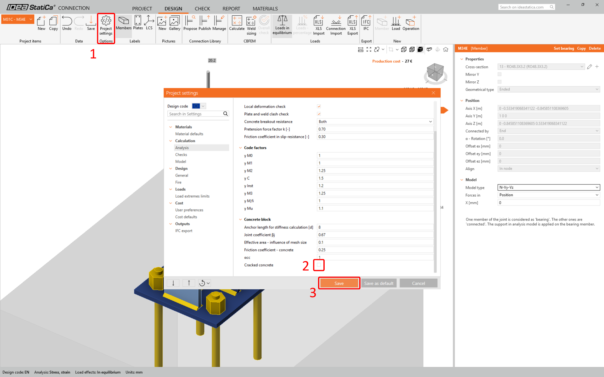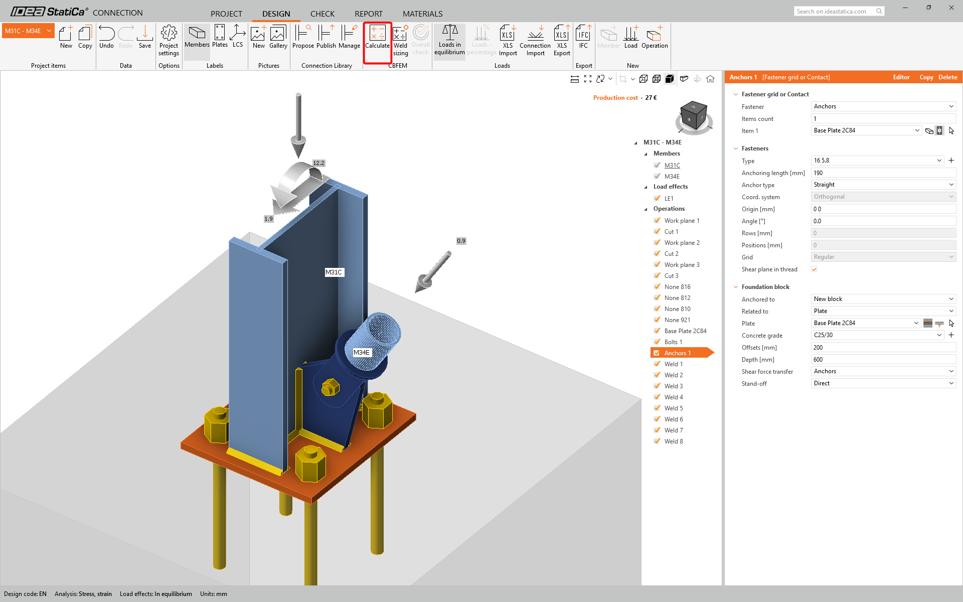 Now run a code-check using the Calculate icon in the CBFEM panel from the top ribbon.