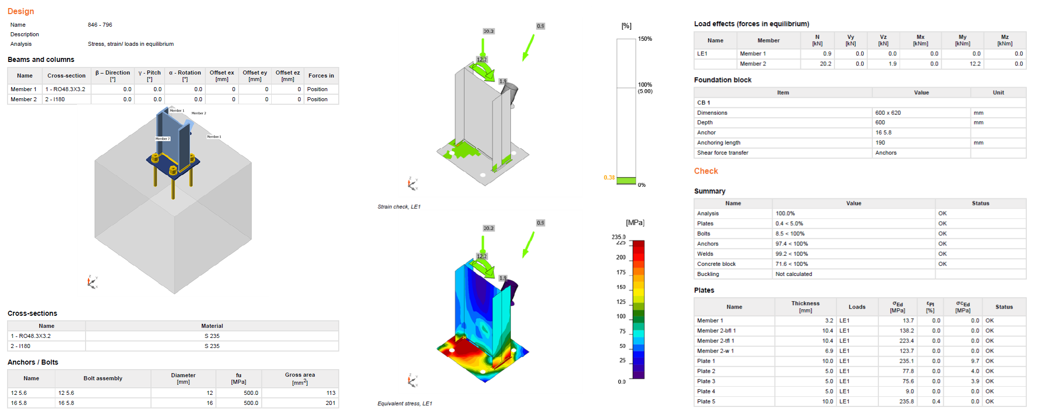 Once the code-check is finished in the Report tab you can create the report containing results and diagrams for your connection model.