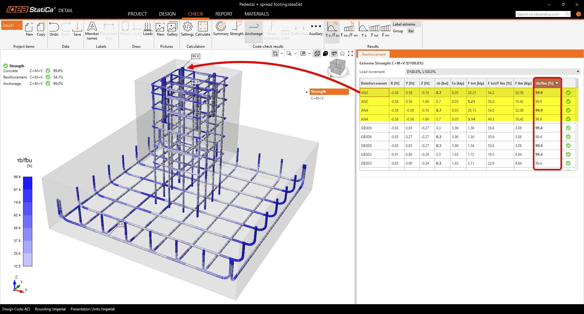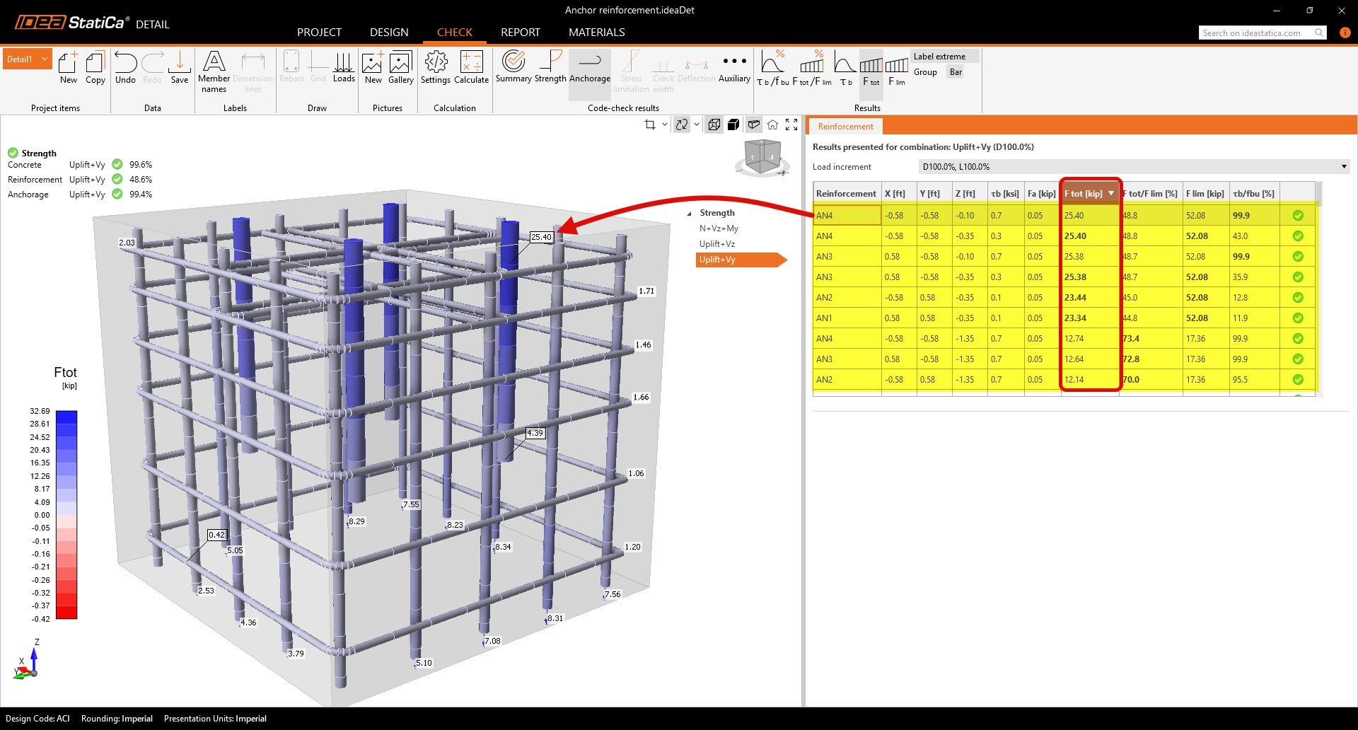 Complete code-check of anchors and concrete block in Detail 3D (ACI)
