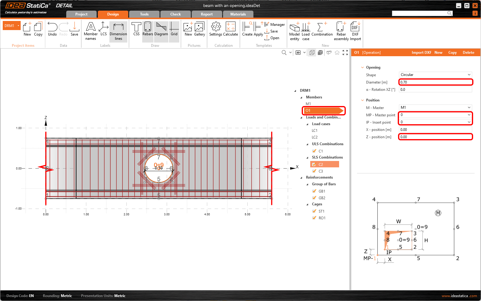 In this tutorial, we will go step by step through modeling and code-check of a part of a concrete beam with a circular opening.