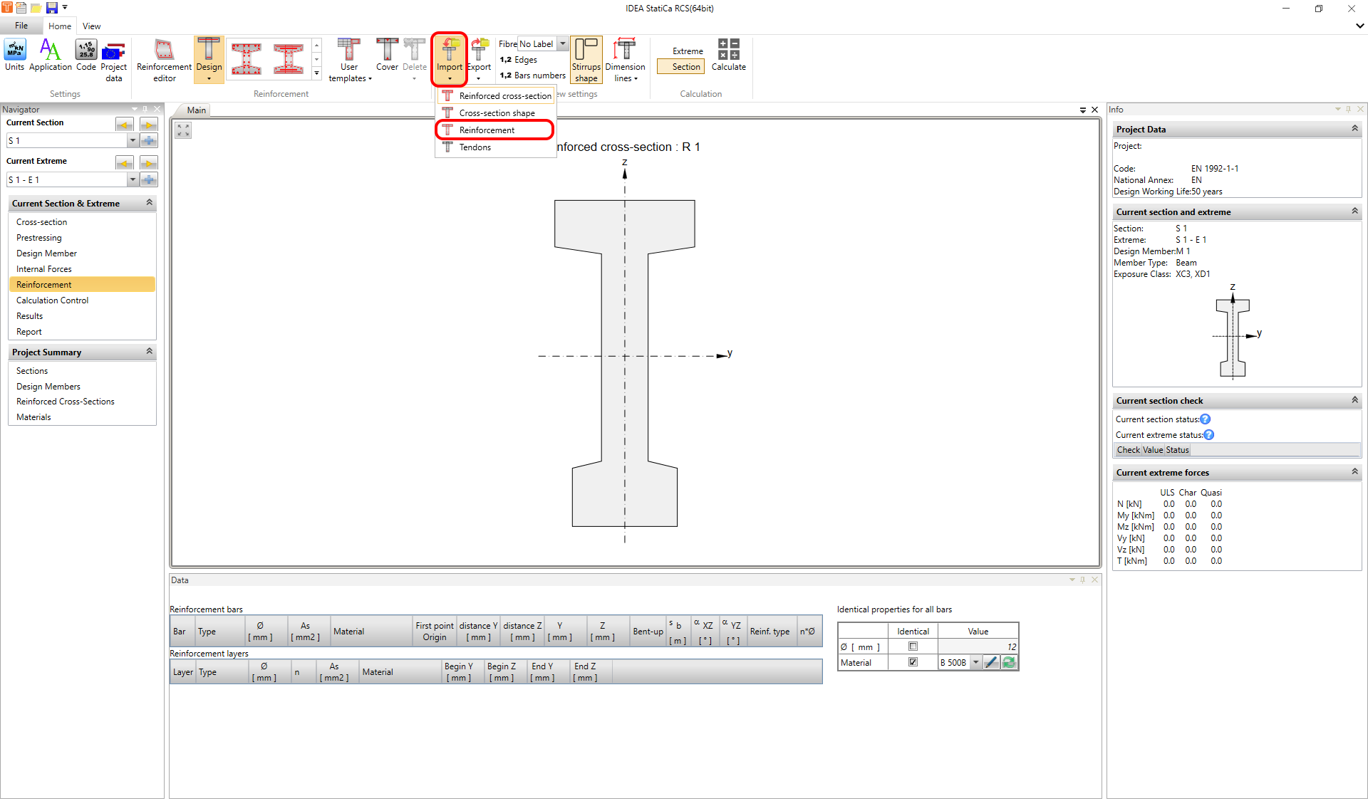 Last but not least, there's an option to use the .nav file. This functionality can be accessed from the Navigator from Cross-section, Prestressing, and Reinforcement. And it can be also found in the Reinforcement editor.