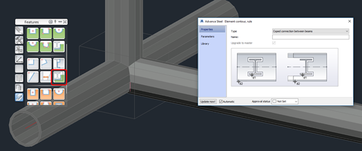 • The best way how to design your connection is to use the previously defined macros from the Advance Steel Connection vault menu.