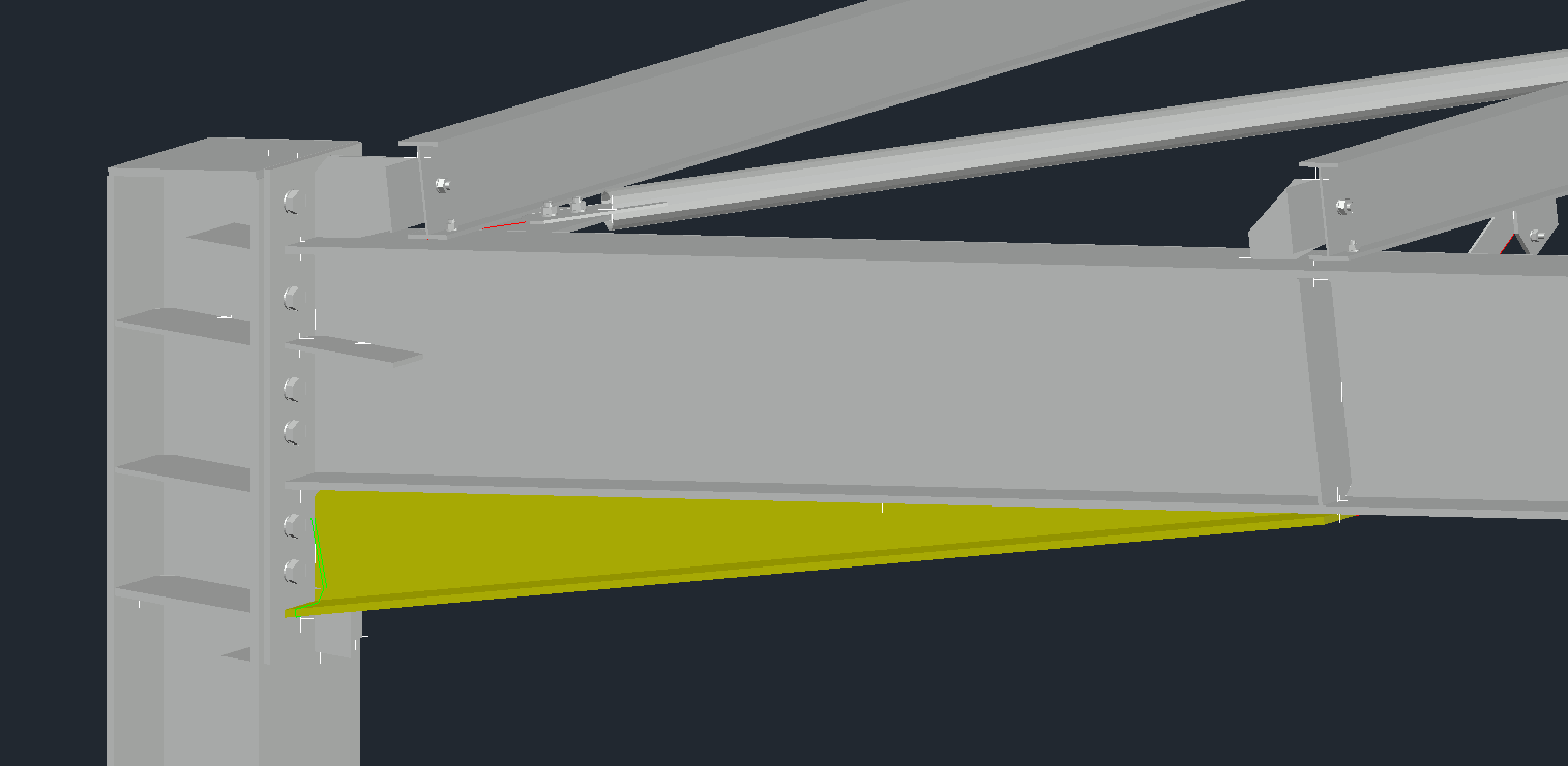 The green HSS rolled section beam which was used for the cut is not needed anymore and can be hidden or deleted.