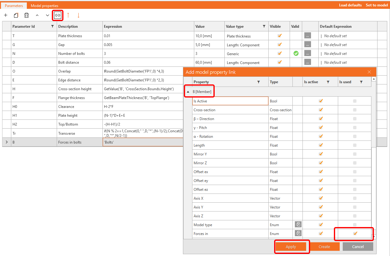 So add another parameter B with the value 'Bolts' and link it to the member B. In case, the position is changed, you can add a validation (CheckForcesIn('Bolts', 'B')).