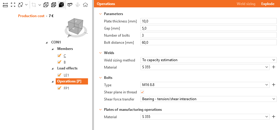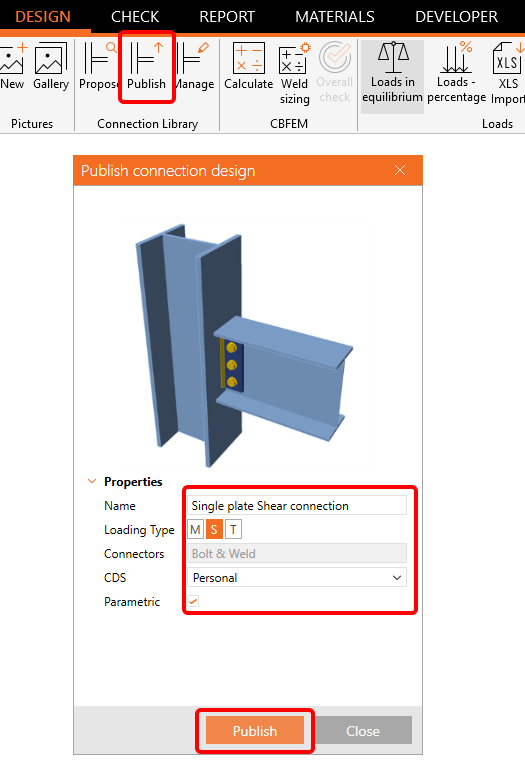 Parametric design in IDEA StatiCa Connection - Single plate Shear connection