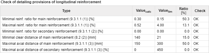 A verificação das disposições de pormenor depende também do tipo de elemento 2D. As verificações separadas para a armadura principal e para a armadura de distribuição são efectuadas para elementos de laje e laje de cobertura. A armadura vertical e horizontal é distinguida para elementos de parede.