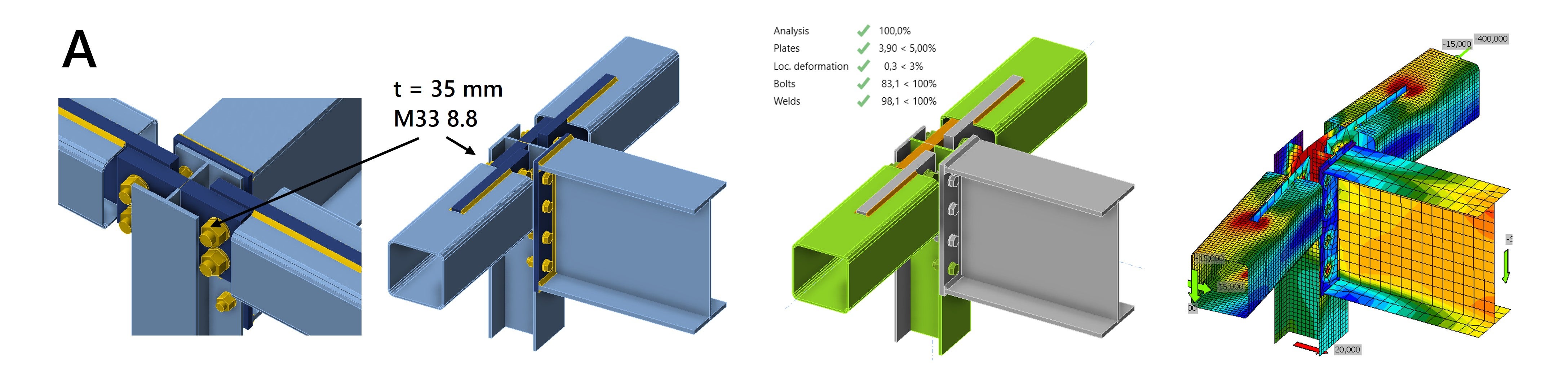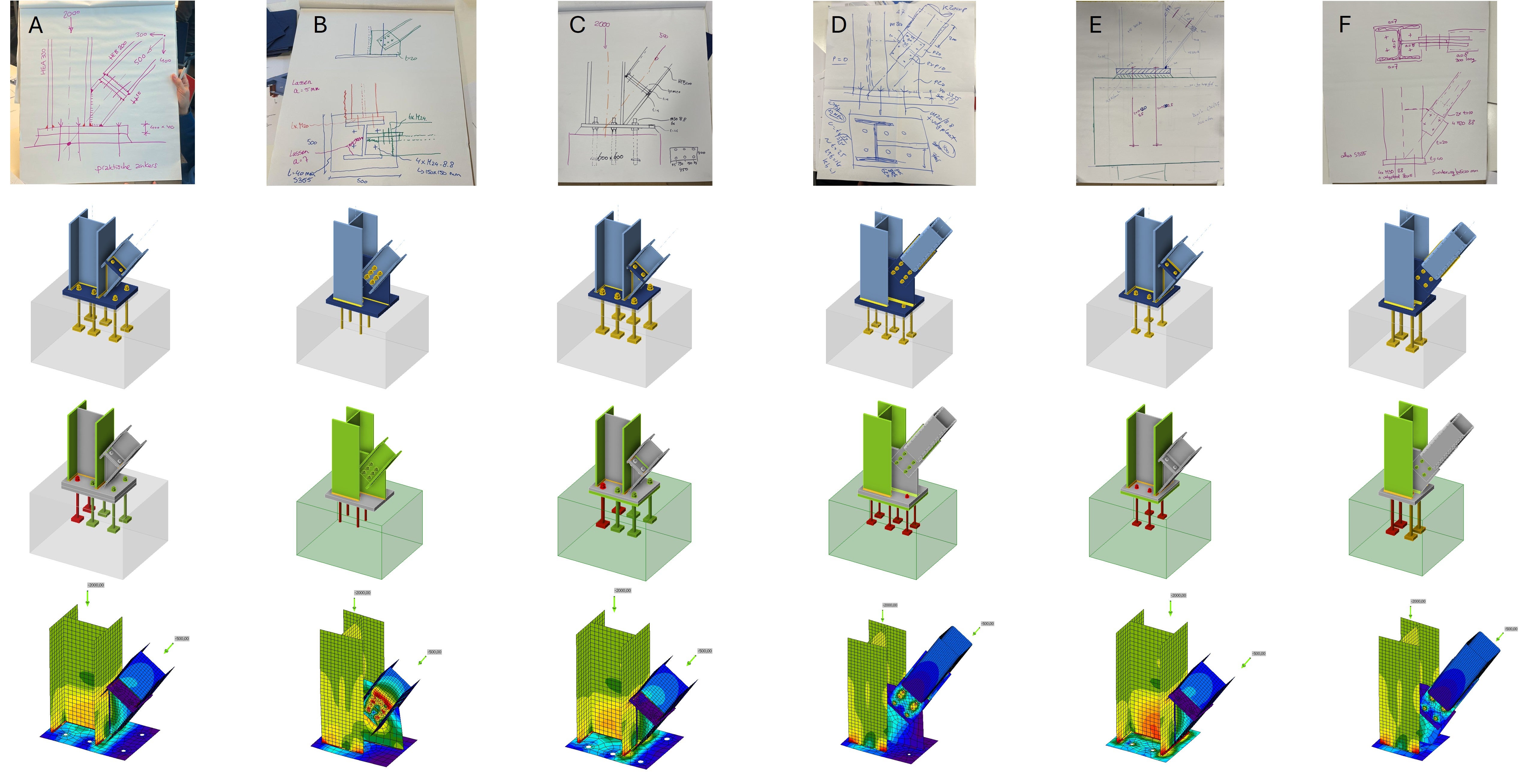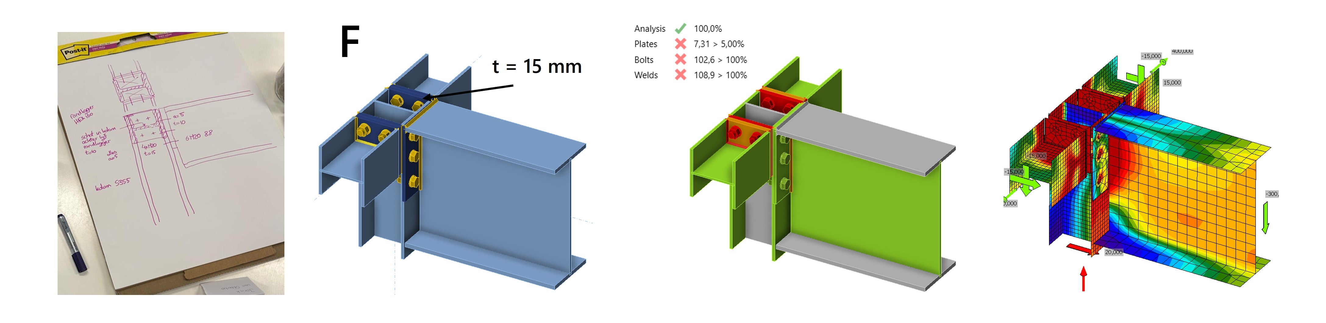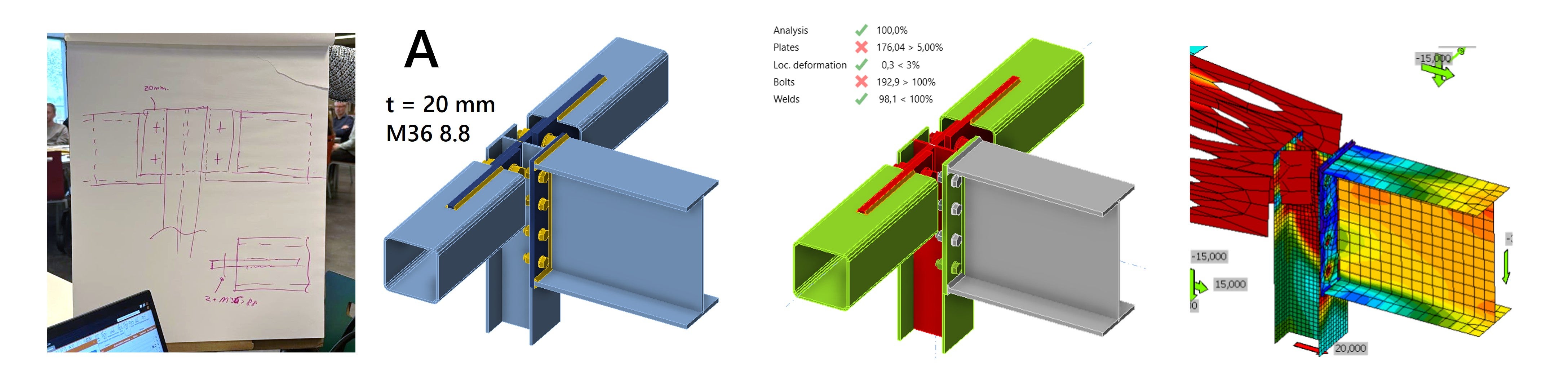 We explain the designs and results in more detail below. The article is divided into two parts, one for each steel connection design challenge.