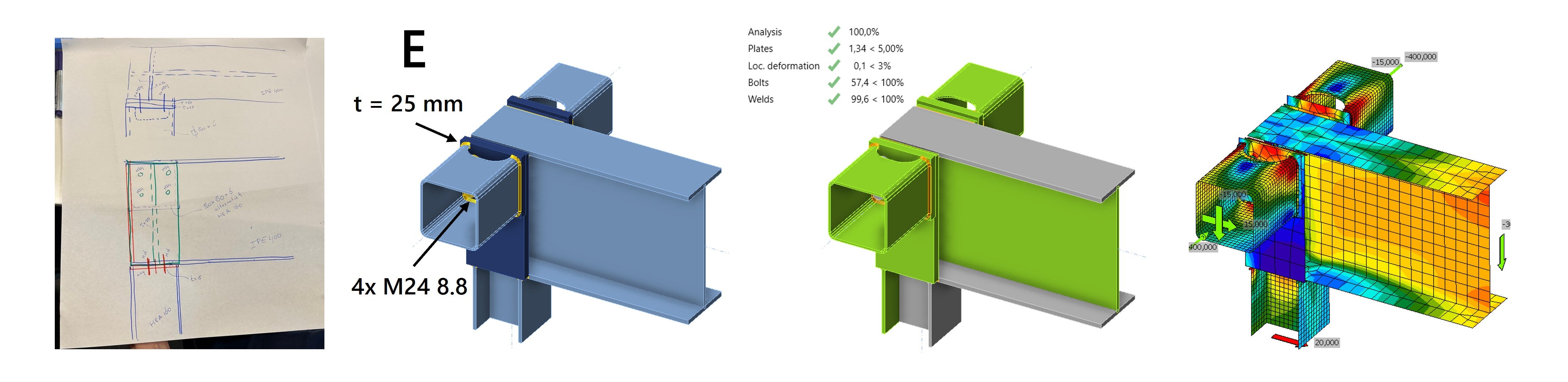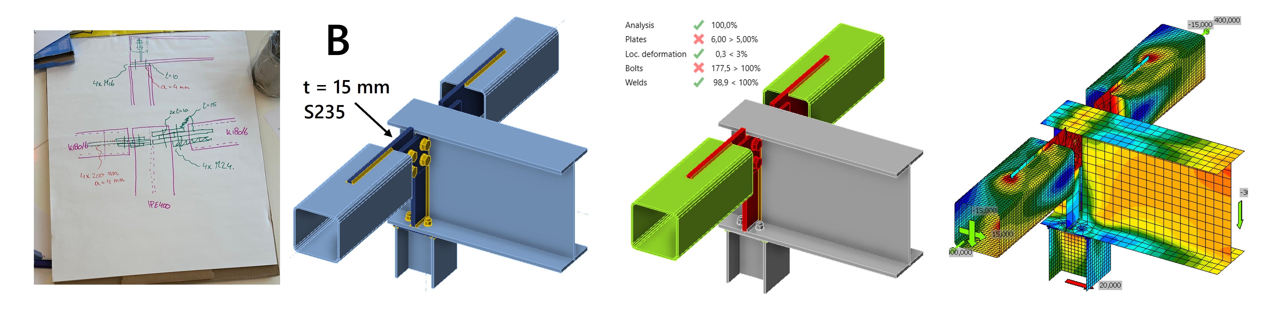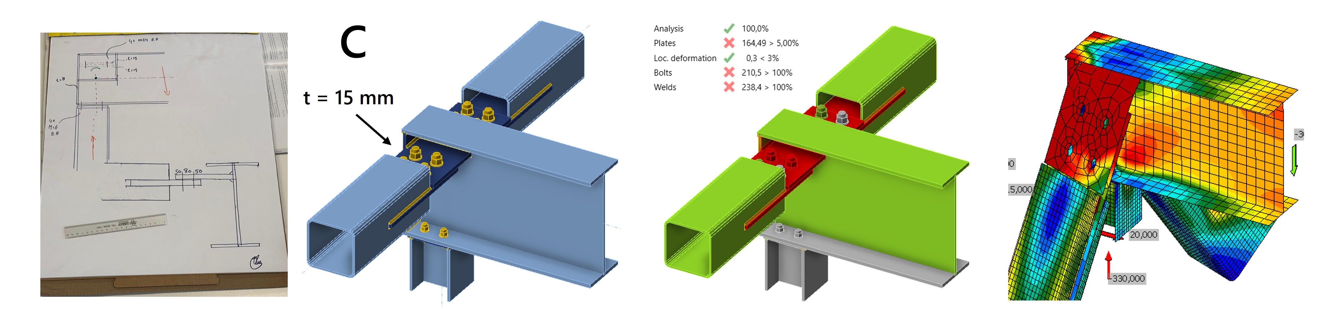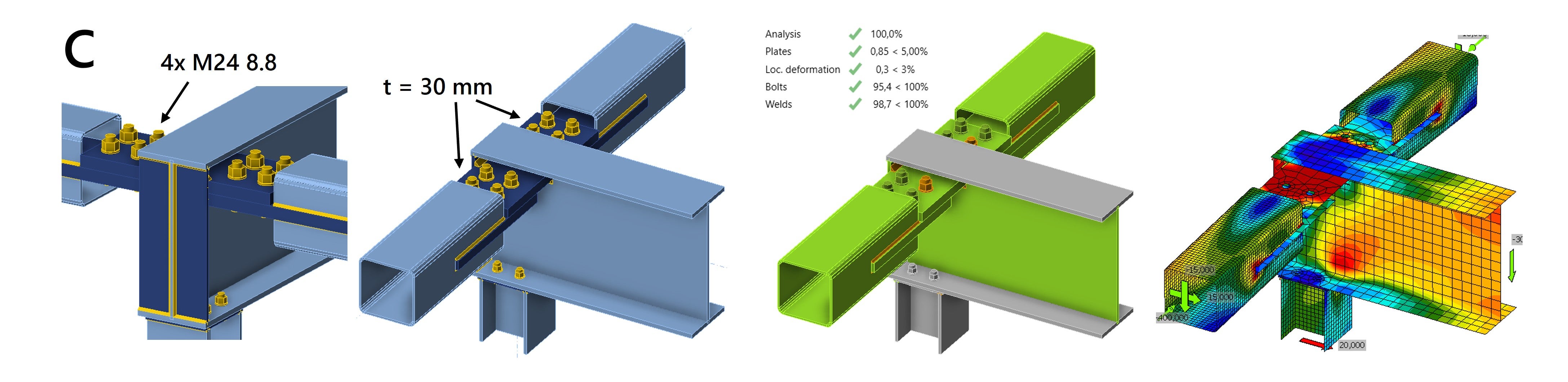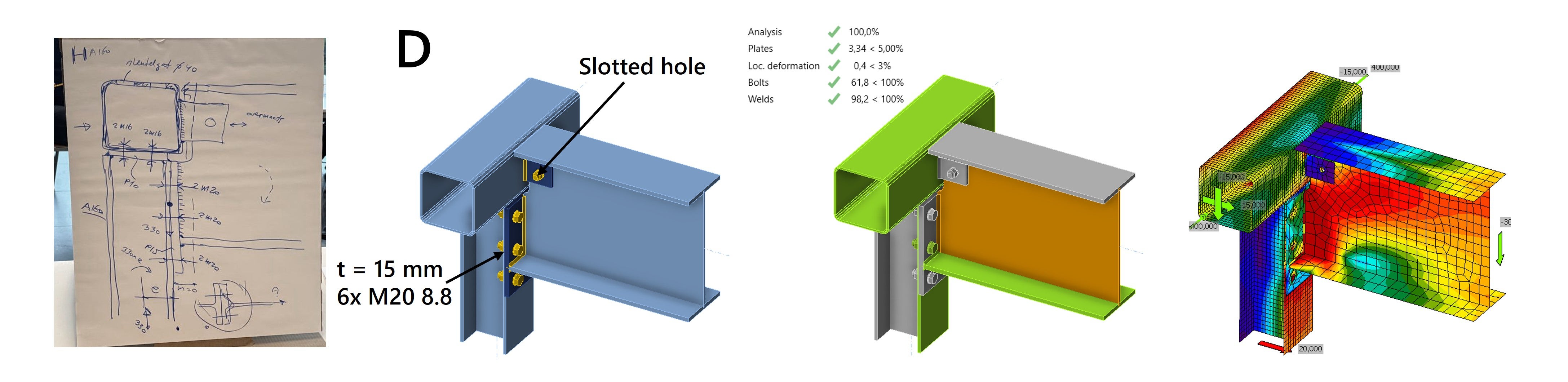 We explain the designs and results in more detail below. The article is divided into two parts, one for each steel connection design challenge.